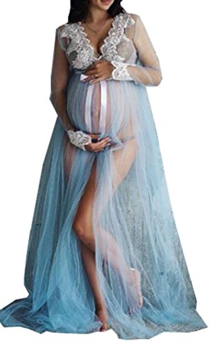 Fymnsi Umstandskleid Langarm Spitzenkleid V Ausschnitt Schwangerschaft Fotografie Kleid Mutterschaft Schulterfreies Meerjungfrau Langes Maxikleid Damen Umstandmode Schwangere Fotoshooting Kleidung Kleider Brautkleider