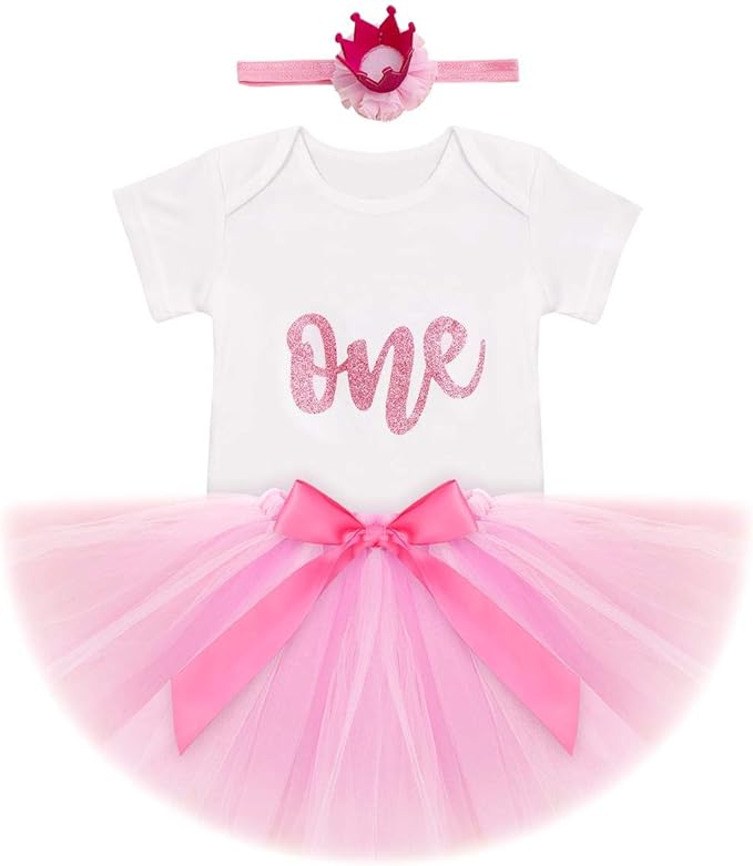 Obeeii Baby Madchen 1 Geburtstag Outfit Neugeborenen Prinzessin Kleid Fur Geburtstagsparty Cake Smash Foto Strampler Tutu Rock Krone Stirnband 3pcs Bekleidungssets Fur Saugling Kinder 6 18 Monate Amazon De Bekleidung