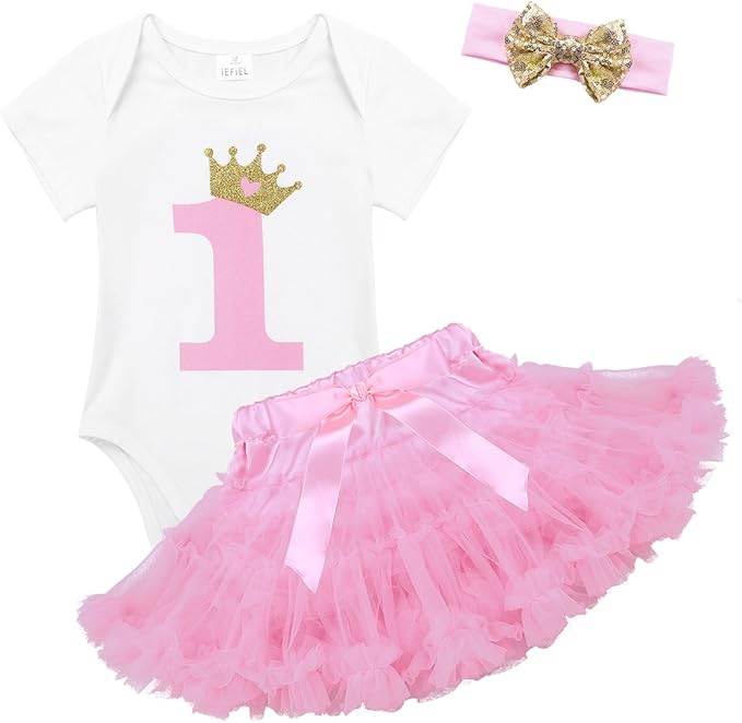 Iwemek Baby Madchen 1 Geburtstag Tutu Kleid Set Romper Rock Tutu Pettiskirt Krone Stirnband Geschenk Sauglings Prinzessin 3 Stuck Outfits Verkleidung Fotoshooting Kostum 6 18 Monate Amazon De Bekleidung