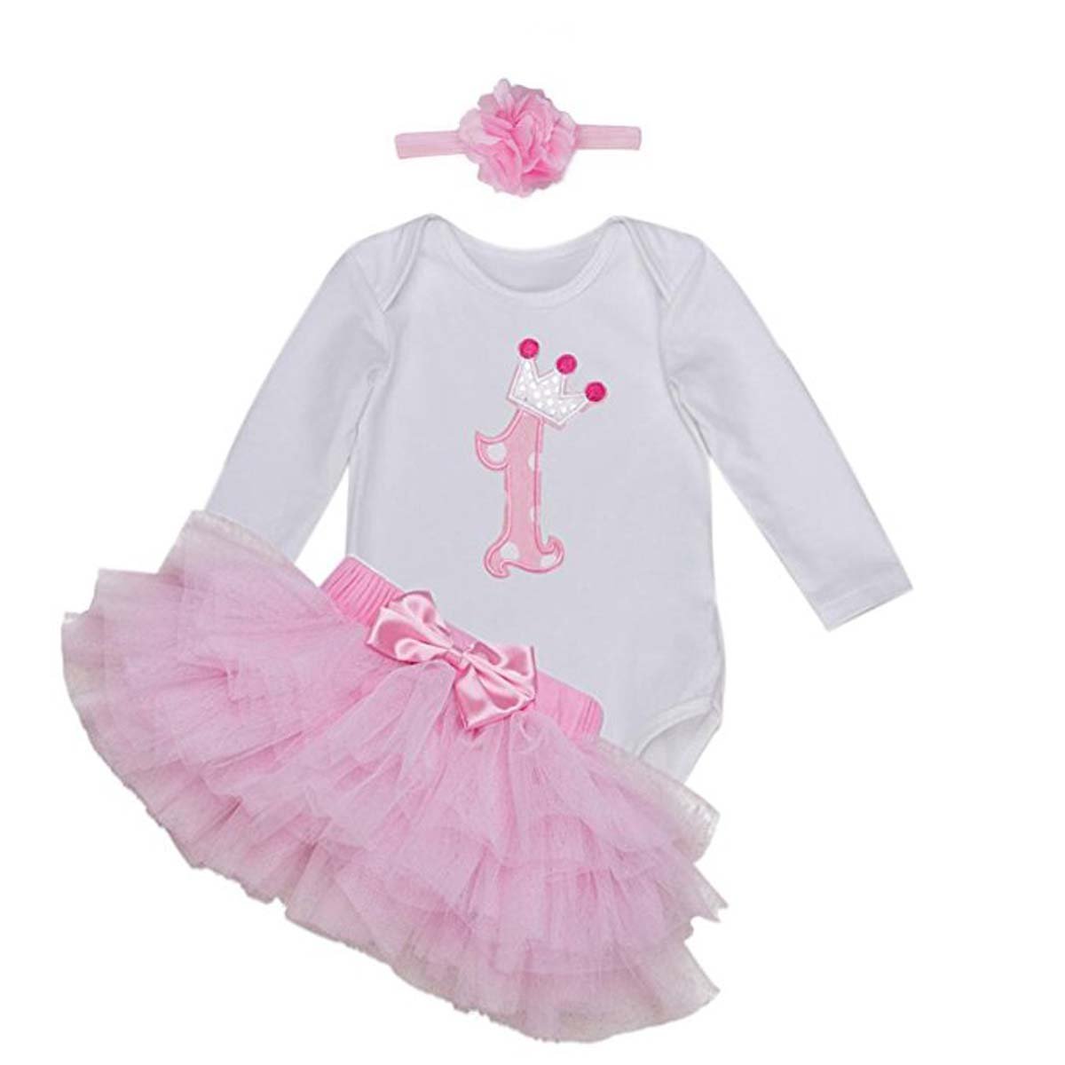 Feeshow Baby Madchen My First 1 Geburtstag Outfit Strampler Body Tutu Rock Kleid Mit Stirnband Set 0 3 Monate Amazon De Bekleidung